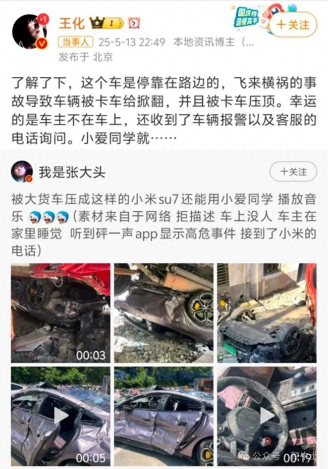 小米集团公关部总经理王化在网络社交平台上对此事进行了回应。他表示,这辆小米SUV当时是停靠在路边的,因飞来横祸被卡车掀翻并压顶。幸运的是,车主当时并不在车上,但还是收到了车辆报警和客服的电话询问。至于小爱同学的功能,王化没有进一步解释。