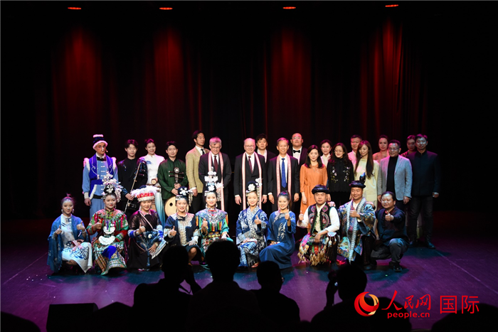 主要嘉宾与全体演职人员合影。人民网记者 殷淼摄