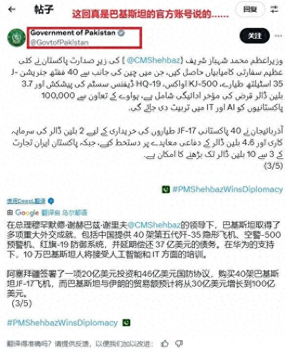 巴基斯坦官方政府发布的消息