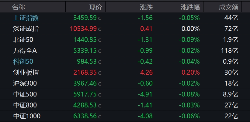 中新经纬7月4日电 4日,A股三大指数开盘涨跌不一,上证指数跌0.05%,报3459.59点;深证成指平开,报10534.99点;创业板指涨0.20%,报2168.35点。