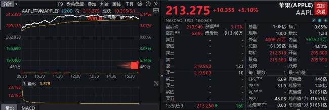 苹果公司股价隔夜在美股市场收盘时大涨5.09%,单日市值飙升1538亿美元,这是自今年5月12日以来的最大单日涨幅。此次股价上涨与苹果宣布的重大投资计划有关。