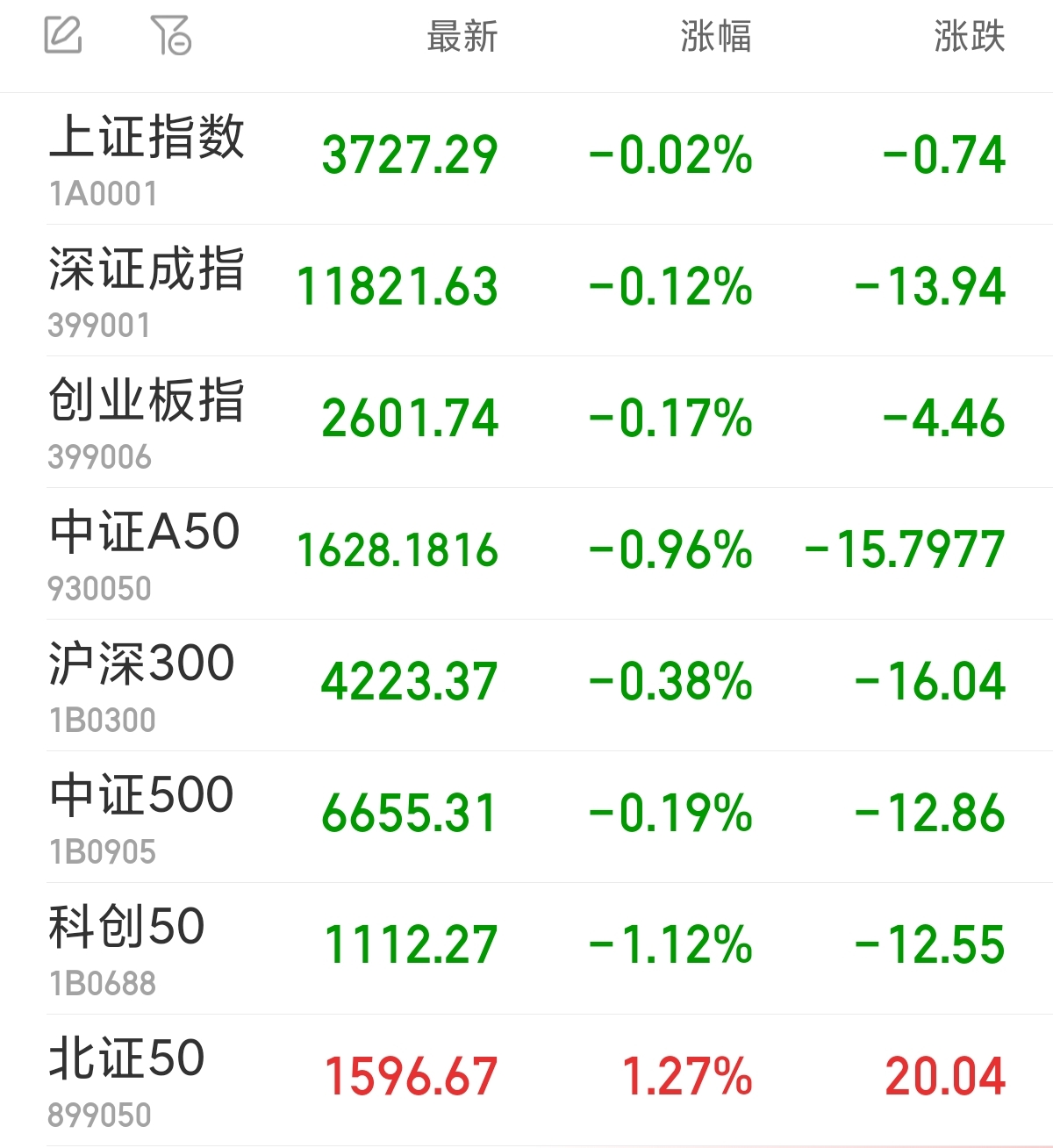 中新经纬8月19日电 周二,A股三大指数冲高回落。截至收盘,上证指数跌0.02%,报3727.29点;深证成指跌0.12%,报11821.63点;创业板指跌0.17%,报2601.74点。