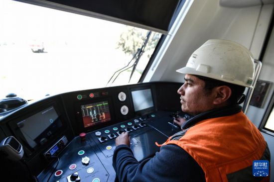 8月25日,在智利圣地亚哥首都大区伦卡市举行的签约仪式上,智利国家铁路公司一名员工在列车驾驶室内工作。新华社发(豪尔赫·比列加斯摄)