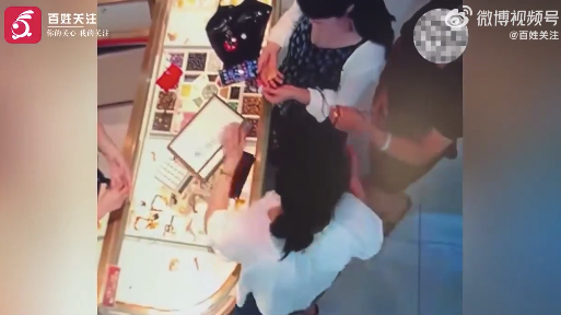 8月24日,湖北省武汉市一顾客金店内不慎损坏金饰,拒绝赔偿想离开被店员阻拦。监控画面显示,一名女子将一件金色吊坠拿在手上,转头看向另一件金饰时吊坠也随手掉至地面。