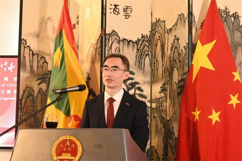 杨舒在致辞中介绍中国共产党领导中国人民取得抗日战争伟大胜利及新中国成立以来经济社会发展辉煌成就,宣介全球治理倡议,表示中方愿与格深化交流合作,共同谱写中格关系新篇章,推动构建人类命运共同体。