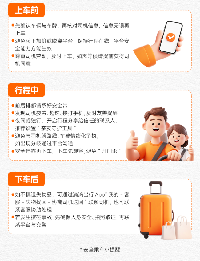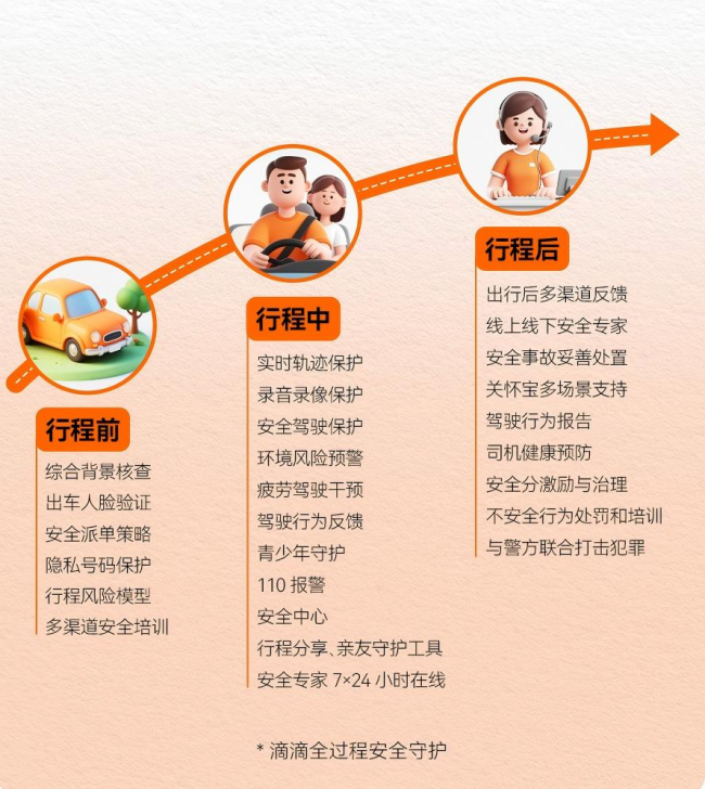 假期期间,滴滴各业务线、各区域、安全、客服、应急办等团队,都会结合节假日出行特点加强全天候值班部署,并针对近期出现的台风等极端天气制定风险防范方案,确保司乘遇到异常情况时能高效响应、妥善处理。同时与警方紧密协作,尽最大努力保障紧急情况下用户的安全与合法权益。