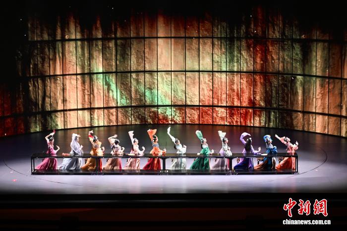 11月4日晚,第十四届中国艺术节闭幕式在重庆举行。作为中国规格最高、最具影响力的综合性文化艺术活动,本届艺术节以“艺动巴山蜀水 共绘时代新篇”为主题,由中国文化和旅游部、重庆市人民政府、四川省人民政府共同主办。本届中国艺术节汇聚数百家全国专业文艺院团和群众文艺团队,集中展演舞台艺术精品100余台、群众文艺作品170余个,展出美术、书法篆刻、摄影作品1100余件,全面展现新时代艺术创作的繁荣面貌。图为演员们在第十四届中国艺术节闭幕式中表演舞蹈《阳光下的麦盖提》。中新社记者 何蓬磊 摄