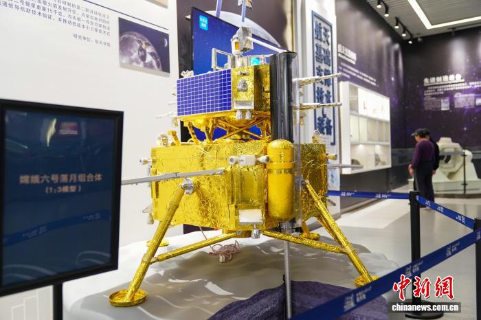 11月5日,黑龙江哈尔滨,哈工大航天馆内展出的嫦娥六号落月组合体(1:3模型)。中新社记者 赵宇航 摄