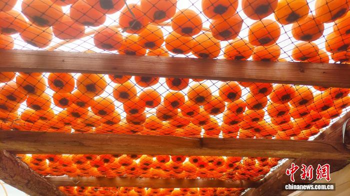 中新网福建永定11月10日电 (黄秋萍 林新腾)连日来,福建省龙岩市永定区的客家村落被甜蜜的气息包裹。山间地头的竹架上,层层叠叠的柿饼泛着琥珀光泽,部分已覆上细密白霜,微风拂过,清甜果香与农户的欢声笑语交织在一起。