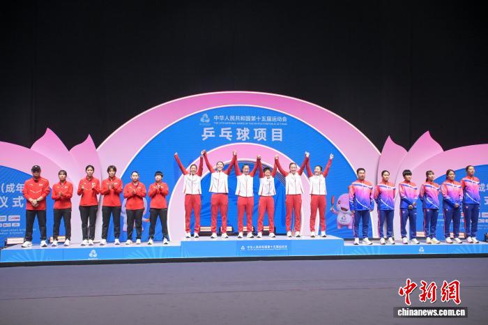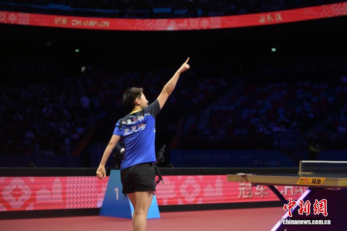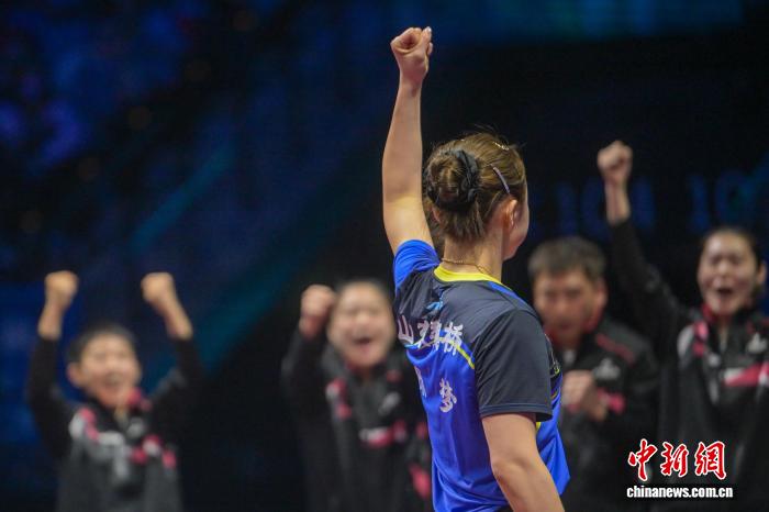 图为河北队选手孙颖莎(左一)在比赛中庆祝。中新网记者 陈永诺 摄