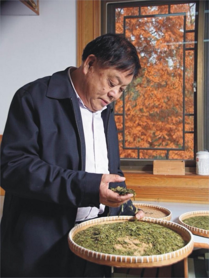 在那个知识产权意识尚薄弱的年代,“贡牌”成为龙井茶品质的保证,也成为消费者辨识正宗西湖龙井的重要标志。戚国伟悉心传承龙井茶传统制茶技艺,在保留核心工艺的同时,对炒制手法进行精心改良。他炒制的茶叶被浙江省农业农村厅收藏作为特级龙井茶标准样,奠定了龙井茶品质评判的基准。