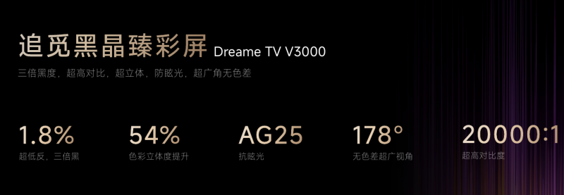 除了强大的AI能力,追觅电视V3000系列的黑晶臻彩屏也堪称“环境光杀手”。通过三层精密结构的协同设计,它将屏幕反射率压低至1.8%,仅为行业平均水平的三分之一,仿佛能“吞噬”所有环境光,彻底解决了普通电视白天反光刺眼、画面模糊的痛点。