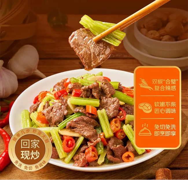 对于想要轻松做出一桌好饭的年轻人来说,京东七鲜在这个春节还准备丰富的快手菜,小炒黄牛肉精选牛霖部位,肉质紧实不柴,两种辣椒完美组合复刻经典湘味;湖南口味鸡鲜辣打底,越嚼越香;喜欢川味的也有粉蒸五花肉、回锅肉等多款经典川菜,入口一秒梦回川蜀。除了经典的川湘菜肴,还有广式腊味荷兰豆、东北酸菜炖筒骨等多种风味可选,简单几步搞定一桌菜肴。