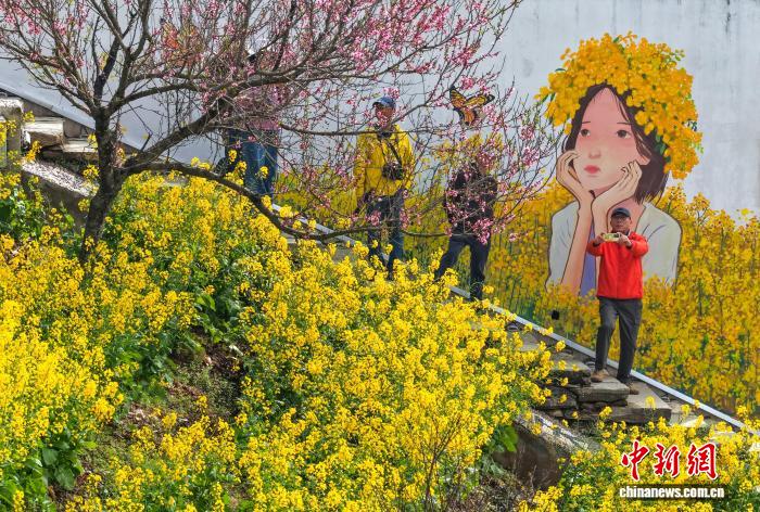 图为游客在欣赏绽放的花朵。(无人机照片)施亚磊 摄