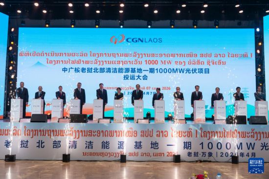 新华社万象4月8日电(记者马淮钊赵旭)中广核老挝北部互联互通清洁能源基地一期100万千瓦光伏项目投运大会7日在老挝首都万象举行,老挝总理宋赛及中老双方相关政府和企业代表200余人出席活动。