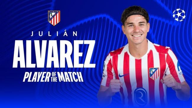 在欧冠1/4决赛首回合比赛中,马德里竞技客场以2-0战胜巴塞罗那。阿尔瓦雷斯在这场比赛中表现出色,凭借一记精彩的直接任意球破门,帮助球队取得胜利,并被评为全场最佳球员。