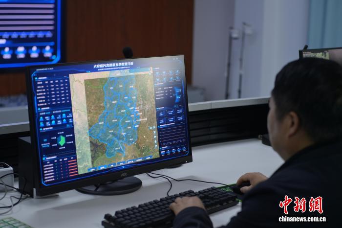 4月14日,六安瓜片茶叶互联网中心,工作人员正通过智能系统查看各个茶园情况。中新社记者 张强 摄