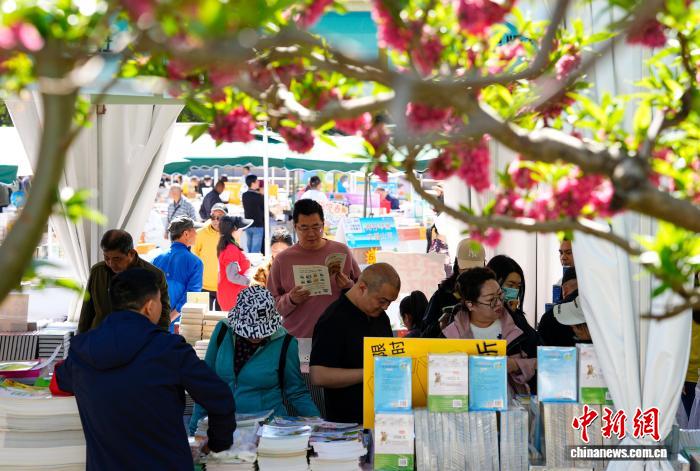 2025年4月22日,以“书香京城 悦读春天”为主题的2025北京书市正式开启。图为市民在朝阳公园选购图书。中新社记者 赵文宇 摄