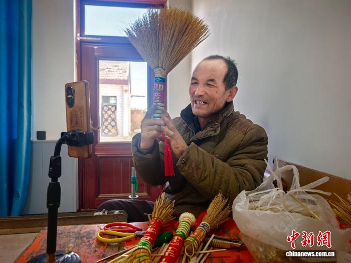 中新网兰州4月16日电 (杨蕊)“纯手工活儿,边做边卖,这个季度收入已近8000元,现在剩下不到一百把笤帚了。”甘肃庆阳市环县手艺人李相玉最近通宵达旦地整理着高粱苗,“五一”快到了,他得加紧再做一些笤帚。