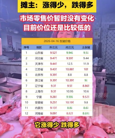 4月16日中午,记者来到郑州金马智慧农贸市场。有猪肉摊主介绍:“现在的猪肉是八块钱一斤,去年上半年最高的时候能卖到十四五块钱,下半年的时候卖到十二块钱左右。”她补充道,虽然最近猪肉价格有所上涨,但因为“涨得少、跌得多”,相比去年的价格目前还是处于比较低的水平。摊主进一步解释,他们售卖的价格就是根据生猪价格来定的。只有当生猪价格波动比较大的时候,零售价才会相应变动。