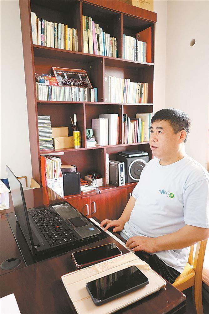 常光军在书房中创作文学作品。