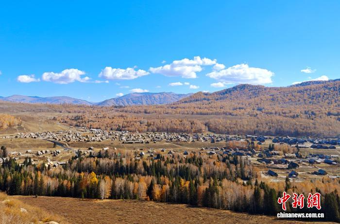 中新社新疆阿勒泰10月29日电(苟继鹏 常轶茹)“禾木的秋天像打翻的调色盘,白桦林的金黄、松树的墨绿,还有远处雪山的银白,全都交织在一起,如同一幅油画。”来自上海的“00后”摄影爱好者李雯29日说。