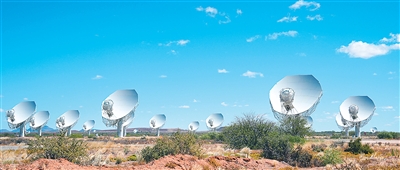 作为SKA先导项目的南非MeerKAT射电望远镜天线阵列。 新华社记者王雷摄 在南非卡鲁荒漠深处,数十台射电望远镜呈旋臂状铺陈,巡天望远,探索着宇宙的奥秘——这是中国首个深度参与的国际大科学工