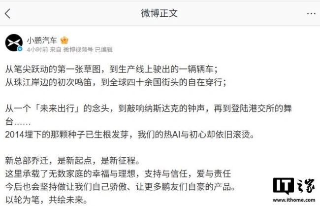 小鹏汽车今日宣布新总部在广州正式启用,标志着公司进入新的发展阶段。小鹏汽车董事长何小鹏提前一天公布了这一消息。他透露,新总部占地近40万平方米,包括8万平方米的公园。其独特的X造型设计和3个科技销售展厅引人注目