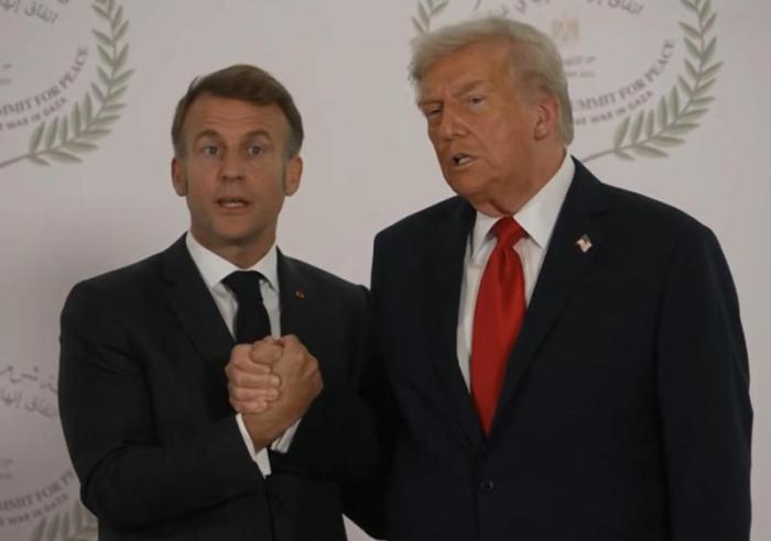 中新网10月14日电 综合外媒报道,当地时间13日,美国总统特朗普在埃及与法国总统马克龙会面,特朗普用力握住马克龙的手,期间互相拉扯手臂,还换了几次握法,整个握手过程长达26秒。