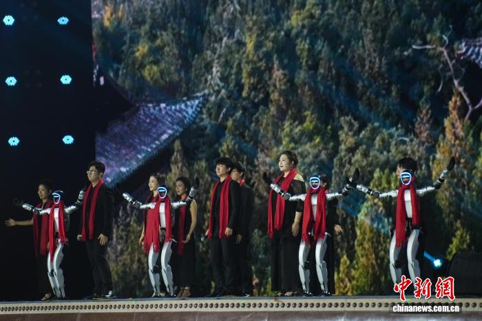 图为机器人与歌手合唱歌曲。中新社记者 武俊杰 摄 图为情景歌舞表演《春生》。中新社记者 武俊杰 摄