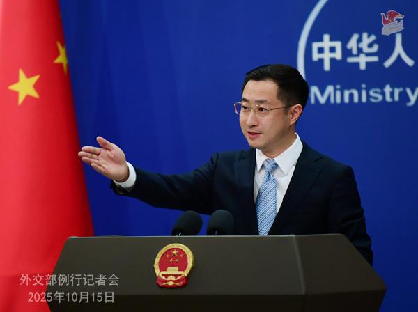 中新网北京10月15日电(记者 黄钰钦)中国外交部发言人林剑15日主持例行记者会。