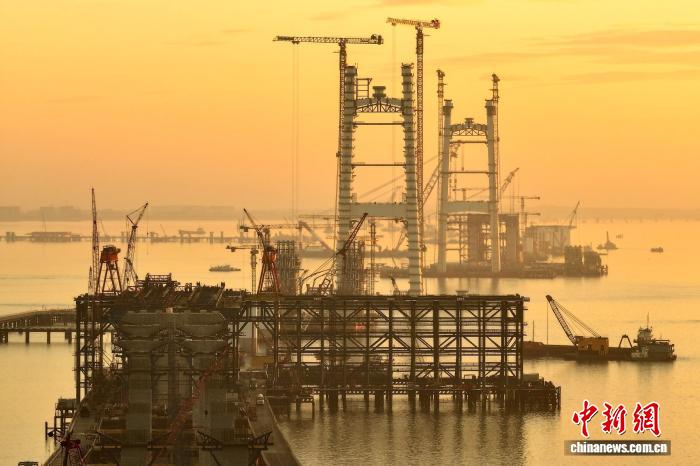 中新网厦门12月2日电 (吴冠标)随着最后一个钢壳吊装到位,厦金大桥关键控制性工程刘五店航道桥主塔1日正式完成封顶,标志着大桥建设取得了里程碑式进展,从“立塔成型”转入“悬索成桥”关键施工阶段。
