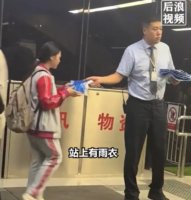 近日,山东济南。下班高峰突降大雨,地铁工作人员站在地铁口为出站乘客免费发雨衣。济南地铁工作人员称:每站都有储备的雨衣,遇到突降雨的情况乘客可自行去找工作人员拿,有的乘客不知道所以有的站工作人员会站在地铁口去发放。...