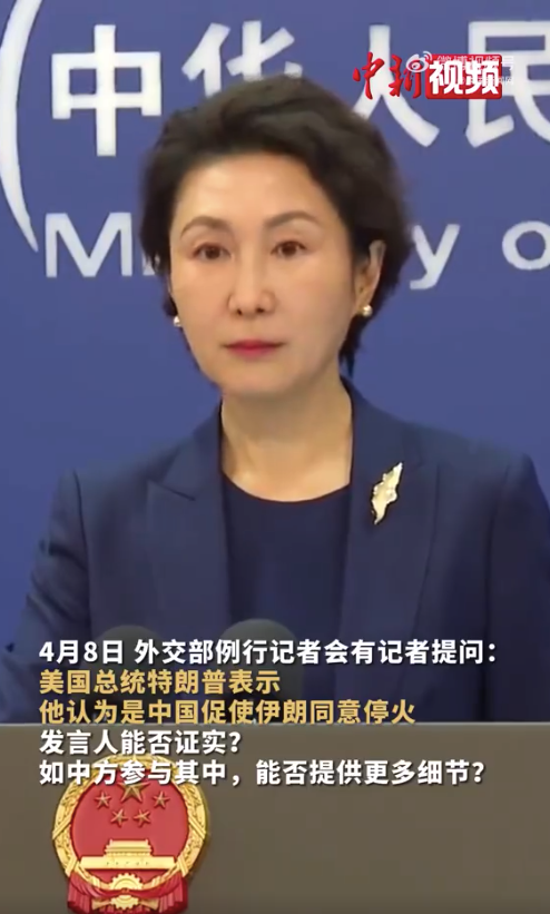 中国外交部发言人毛宁4月8日主持例行记者会。有记者提问:美国总统特朗普表示他认为是中国促使伊朗同意停火,发言人能否证实?如中方参与其中,能否提供更多细节?毛宁:伊朗战事爆发以来,中方一直积极致力于促和止战。王毅外长同相关国家外长先后26次通...