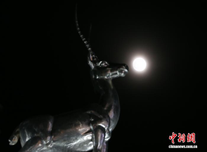 11月5日晚,“超级月亮”现身青海格尔木夜空。图为在青海省海西蒙古族藏族自治州格尔木市城区拍摄的“超级月亮”。张忠苹 摄